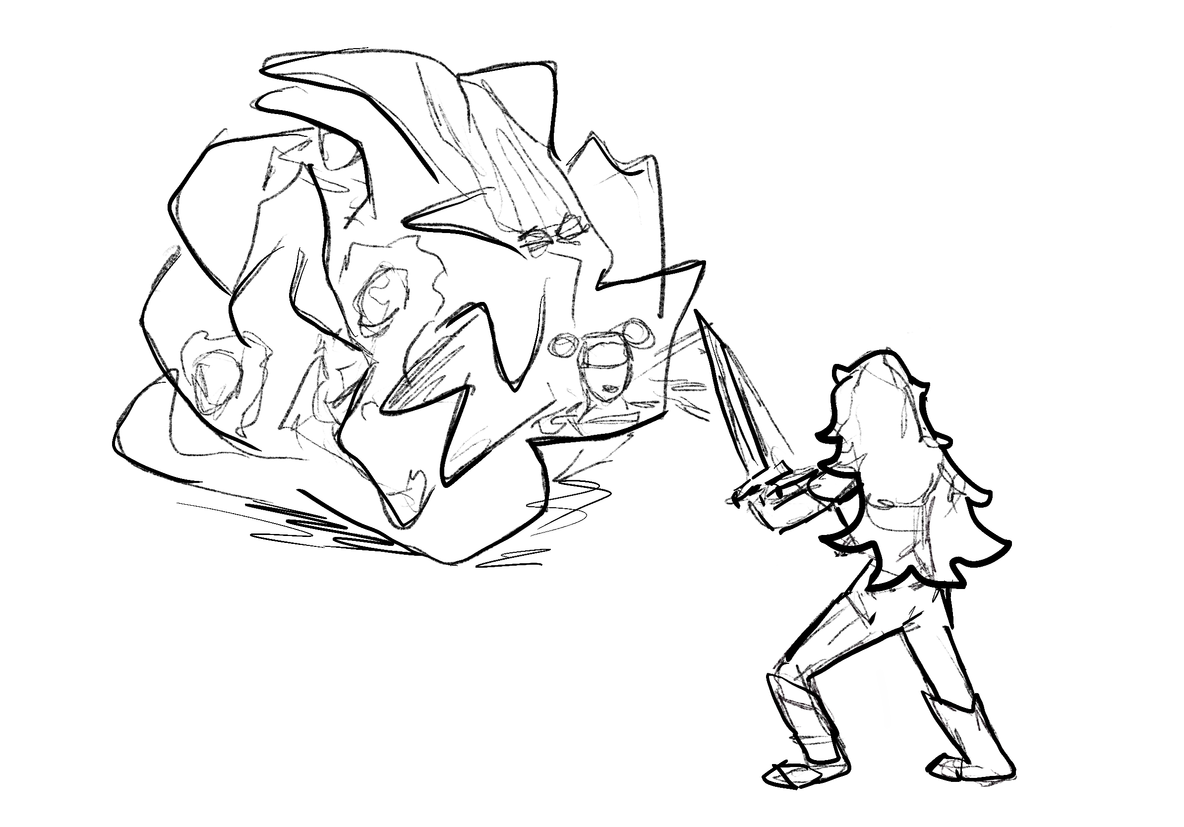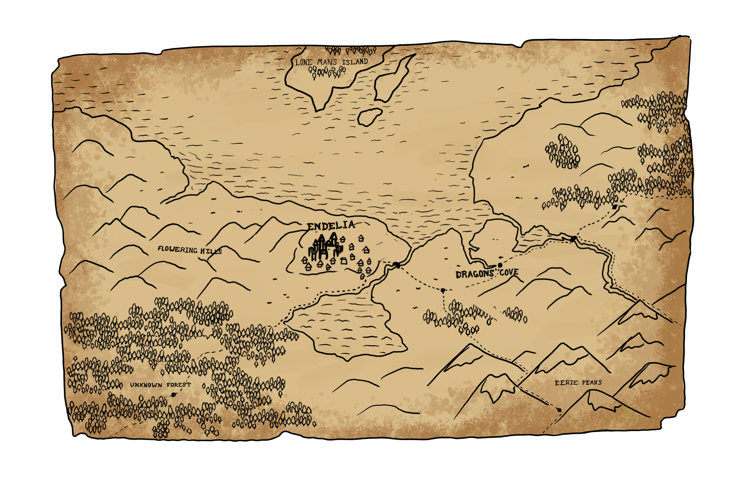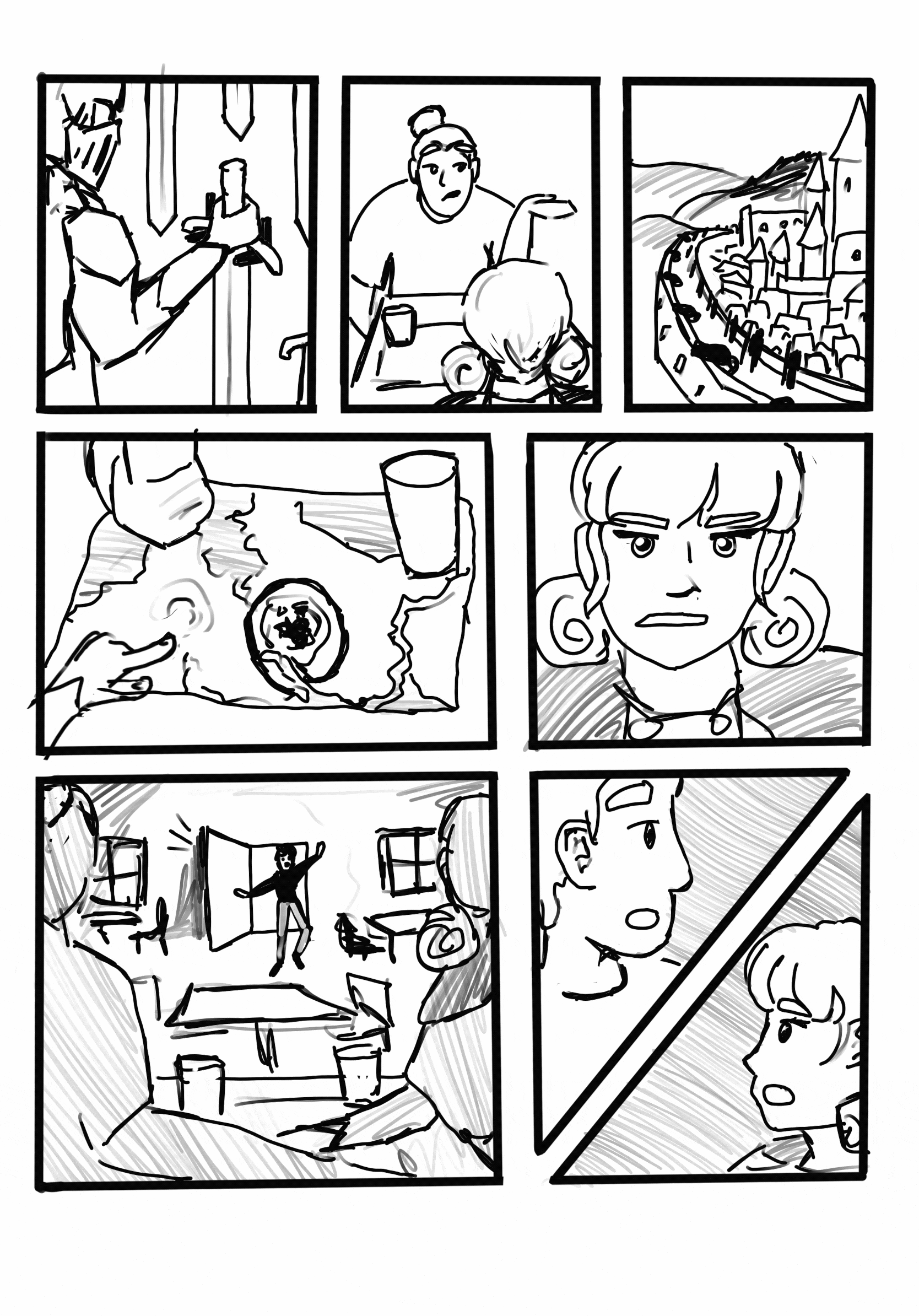 Concept art for a magical kingdom called Endelia where the main character confronts the author of her story.