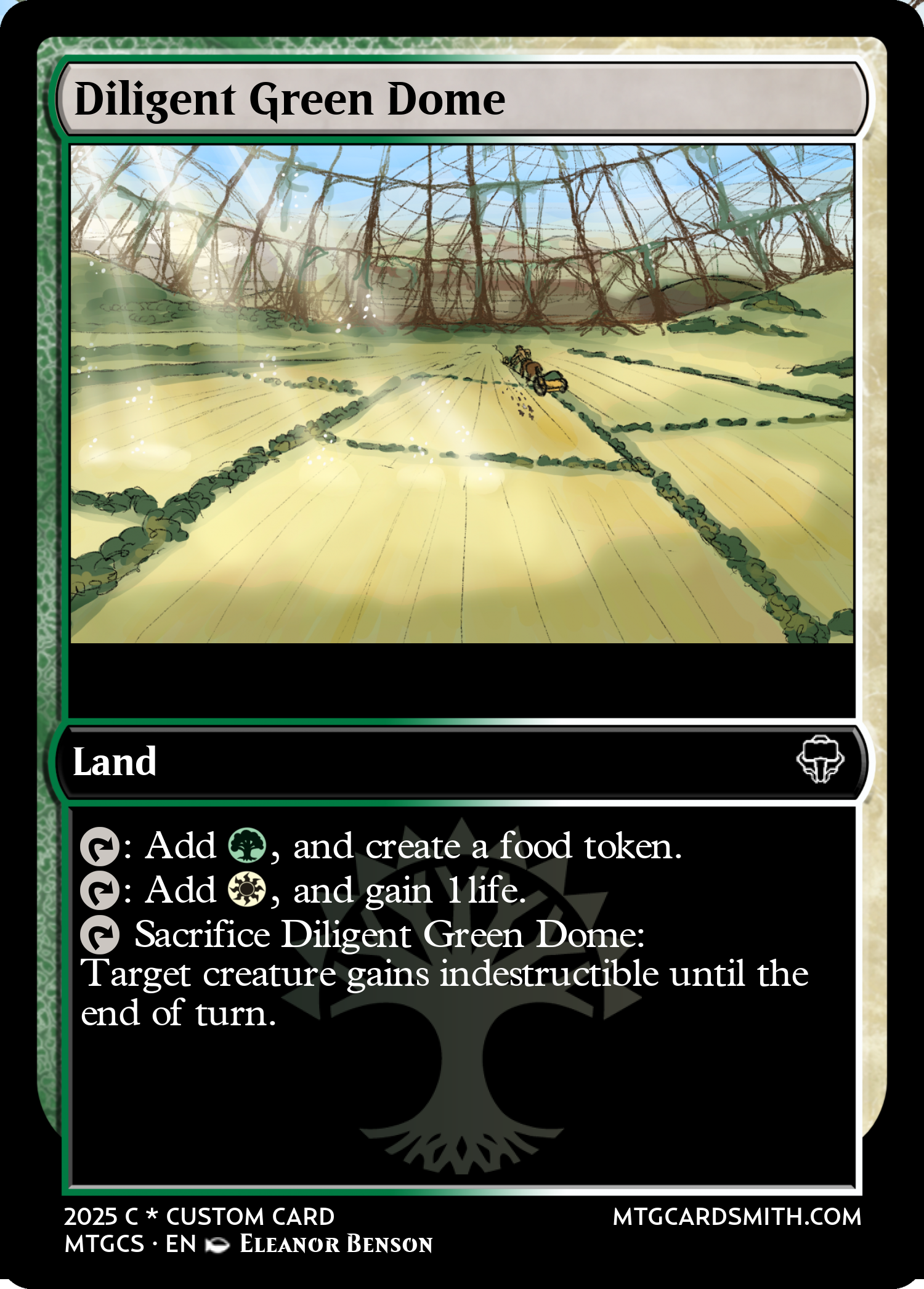 A Magic the Gathering card design for the holy virtue of Diligence.